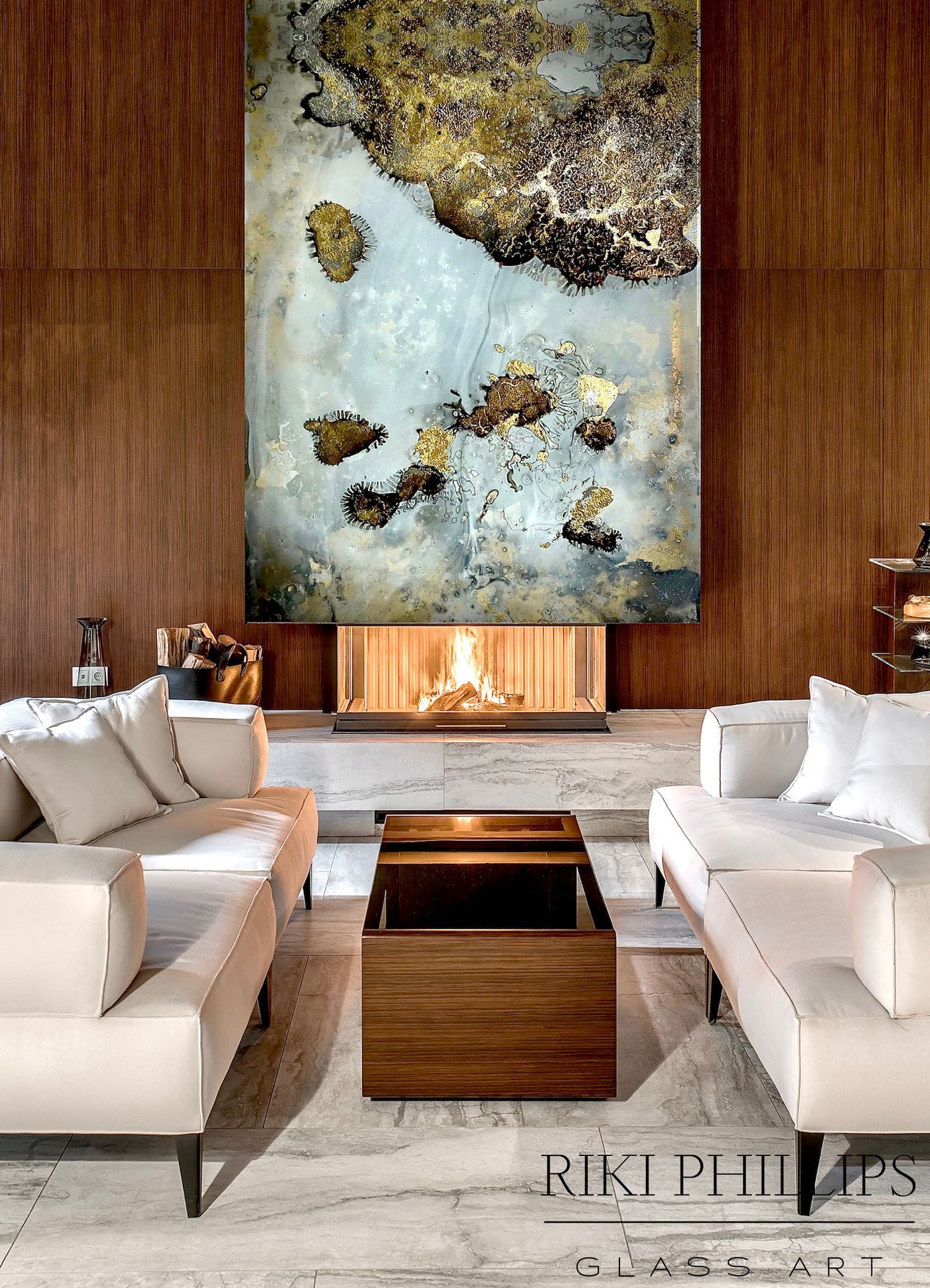 Riki Phillips is a NY based abstract artist known for her signature technique, Reverse hand painted glass. She creates beautiful one of kind glass wall art and bespoke functional glass art such as tables, feature walls, fireplace surrounds, backsplashes, and much more.
