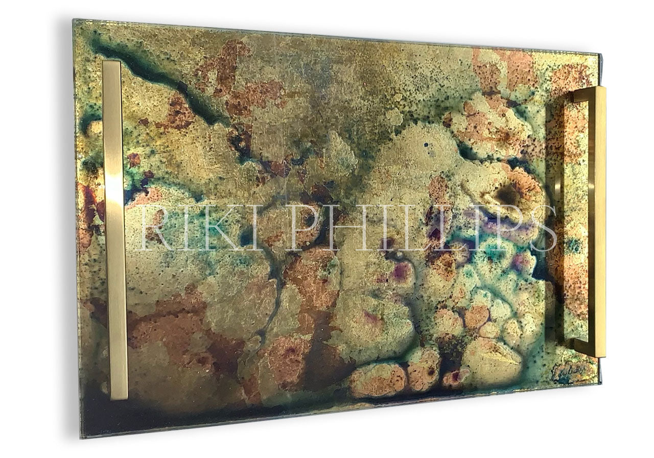 All the artwork is done on the reverse, then sealed with a brushed stainless steel backing, safeguarding the artwork from scratching and oxidizing. The glass is scratch, crack and heat resistant.