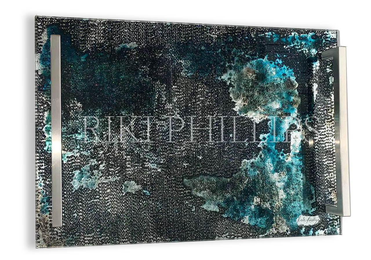 All the artwork is done on the reverse, then sealed with a brushed stainless steel backing, safeguarding the artwork from scratching and oxidizing. The glass is scratch, crack and heat resistant.