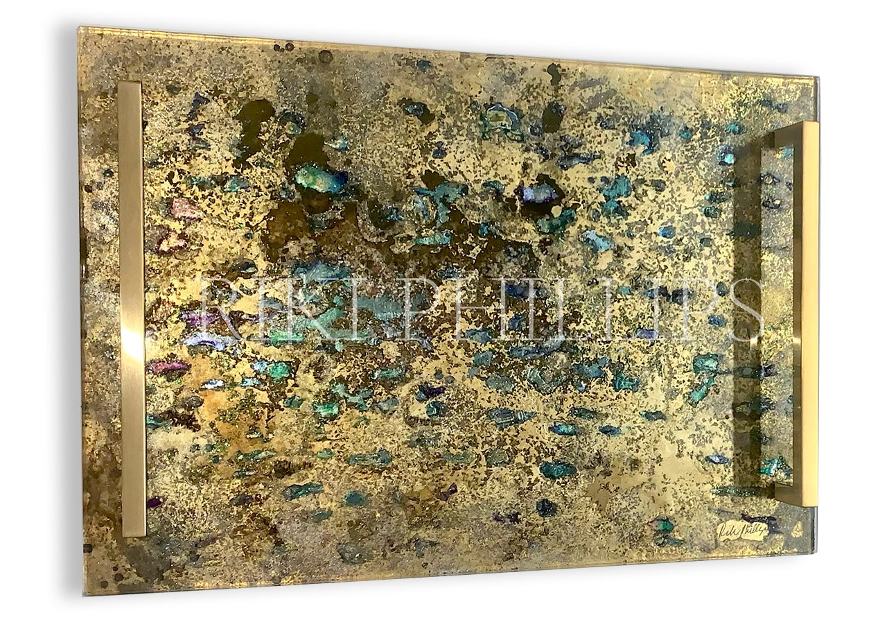 All the artwork is done on the reverse, then sealed with a brushed stainless steel backing, safeguarding the artwork from scratching and oxidizing. The glass is scratch, crack and heat resistant.