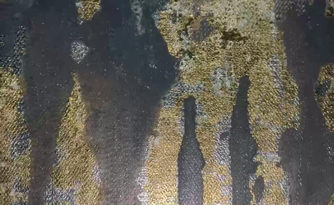 All the artwork is done on the reverse, then sealed with a brushed stainless steel backing, safeguarding the artwork from scratching and oxidizing. The glass is scratch, crack and heat resistant.