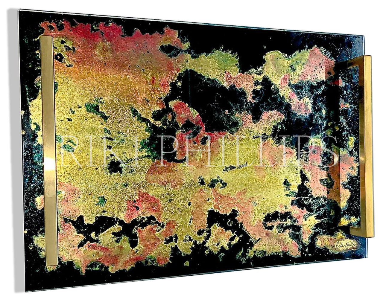 All the artwork is done on the reverse, then sealed with a brushed stainless steel backing, safeguarding the artwork from scratching and oxidizing. The glass is scratch, crack and heat resistant.