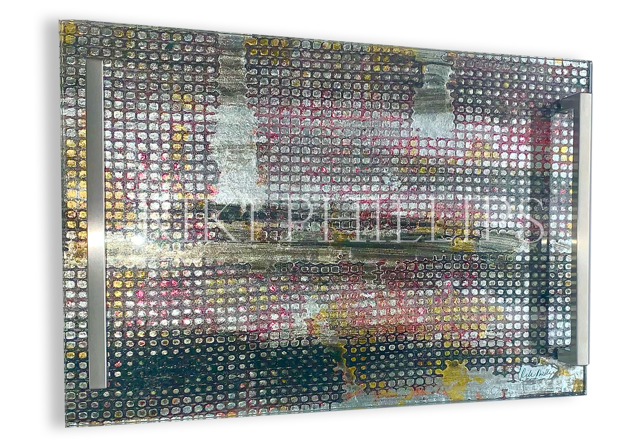 All the artwork is done on the reverse, then sealed with a brushed stainless steel backing, safeguarding the artwork from scratching and oxidizing. The glass is scratch, crack and heat resistant.